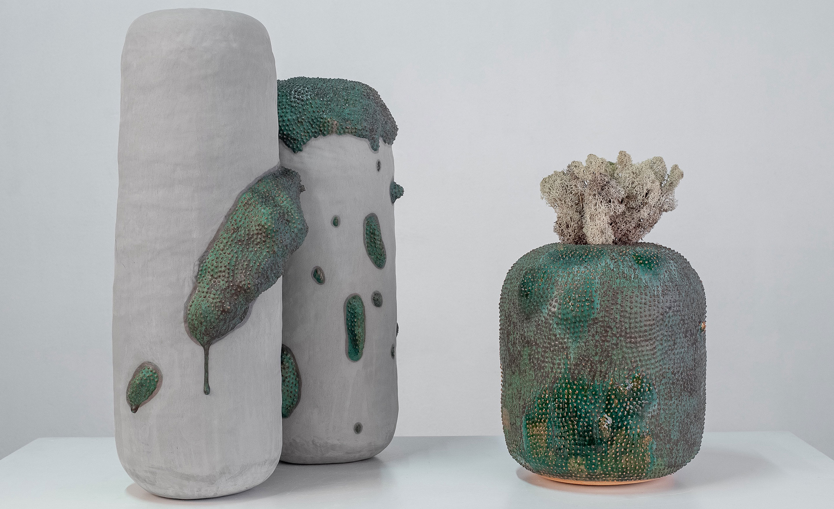 In her distinctive creations, viewers can identify elements drawn from nature, such as rugged rocks, lush mosses, serene lakes, and industrious anthills, all intricately woven into her sculptures. These organic inspirations allow her to forge a visceral connection between her art and the environment.