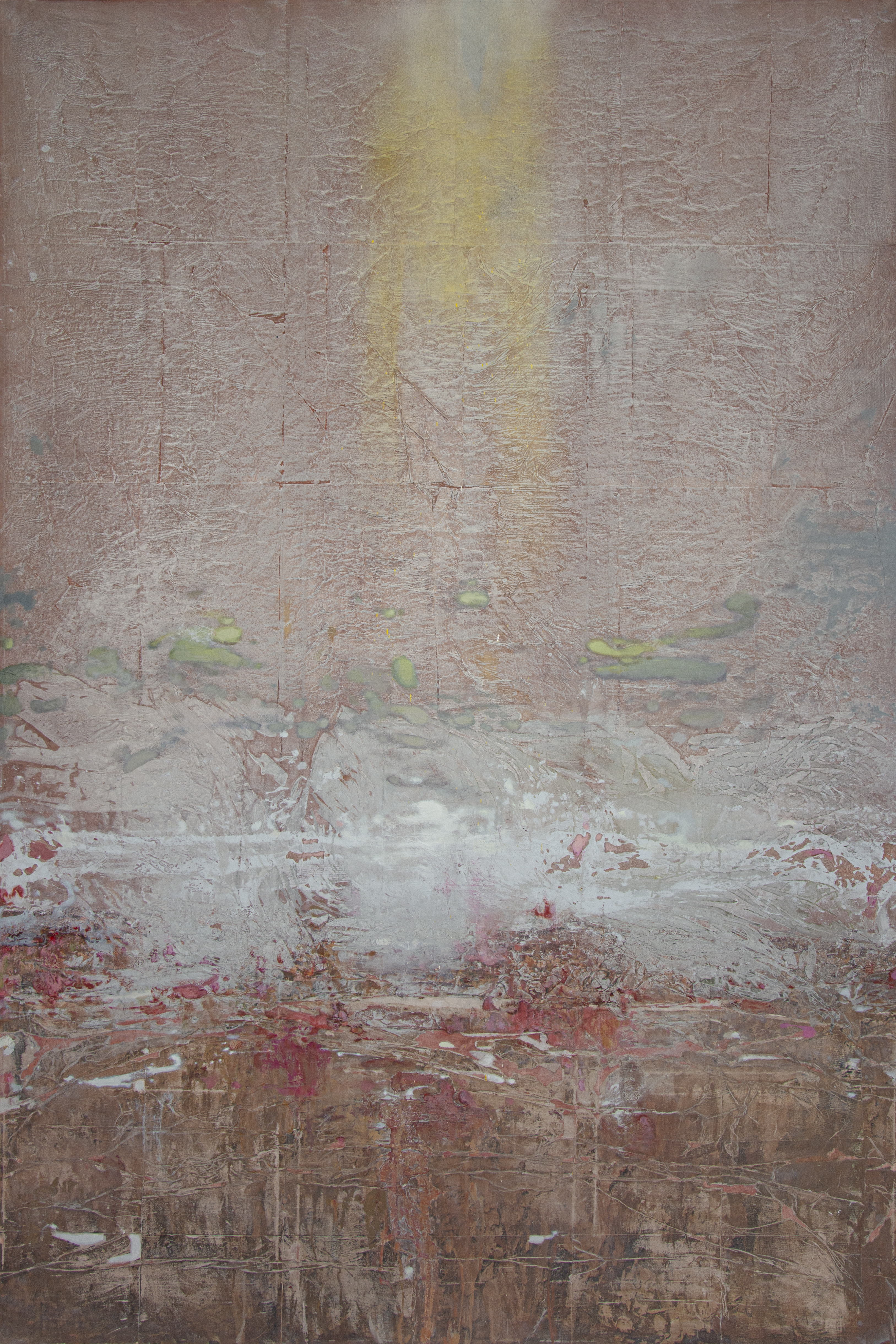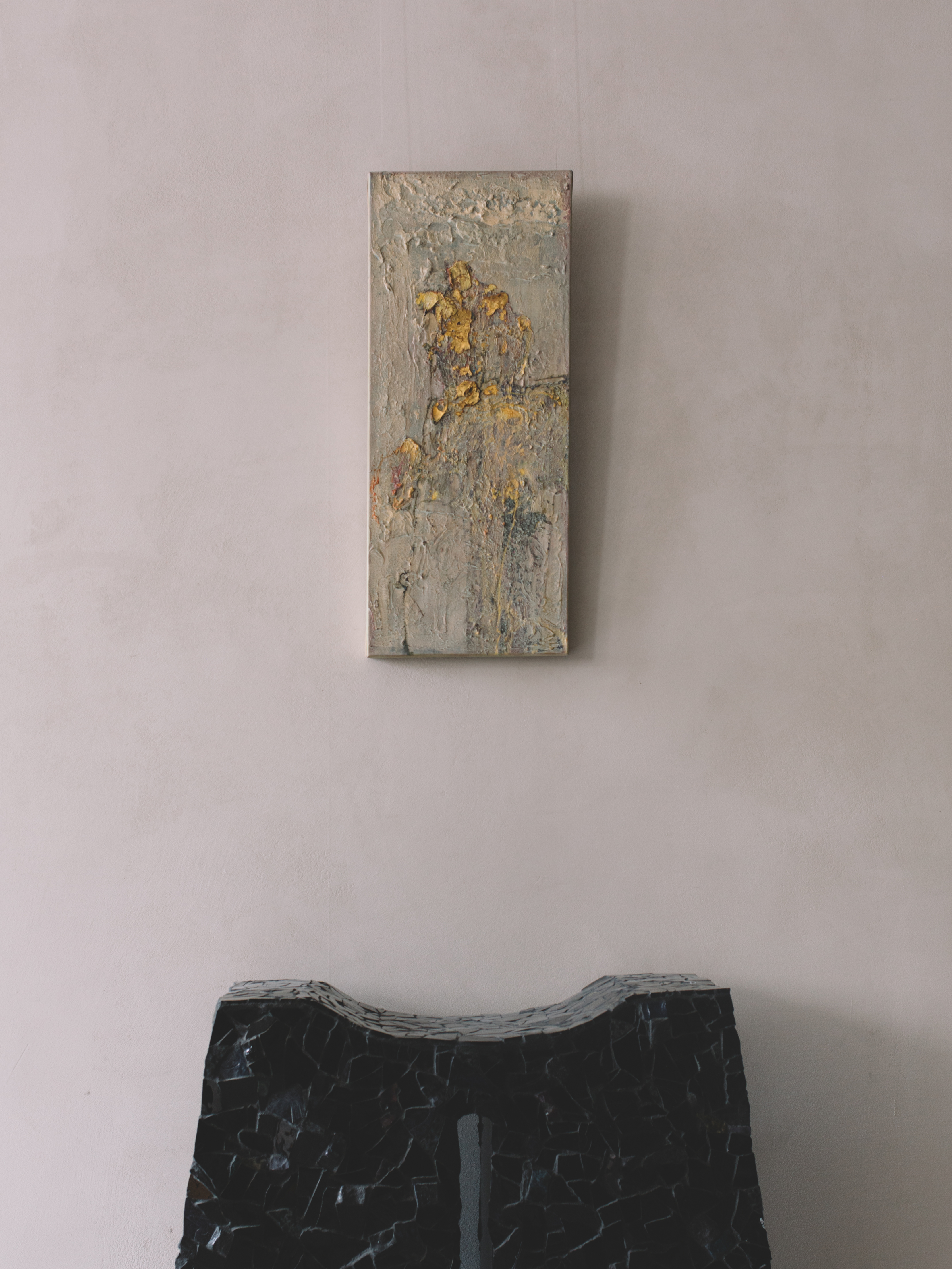 Through a nuanced engagement with the materiality of canvas and paper — and through layered applications of varying density and chromatic intensity — Karev creates large-scale works that operate as transitional spaces. These compositions invite the viewer into altered psycho-emotional states, extending beyond the limits of everyday perception.