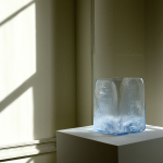 Ethereal and transparent, with a soft bluish tint, the vase seems to be sculpted from light itself, embodying the spirit of a collection where simplicity becomes its greatest virtue.